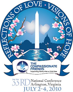 This weekend I will be attending The Compassionate Friends 33rd national conference in Arlington, Virginia. The Compassionate Friends is a national organization for parents who have lost children. There are over 600 local chapters across the country. This is the first time I'll be going to one of their national conferences. Fortunately for me, it is not far! I hope that it will be a very healing experience. There will be several speakers, all of whom have lost children. Over a 100 different workshops will be offered. The event ends with a Memory Walk. The walkers will be carrying the names of thousands of children that have died. People from all over the country sent in their children's names to be remembered if they are unable to attend or walk themselves. I will be walking in Graham's memory, my beautiful angel boy.